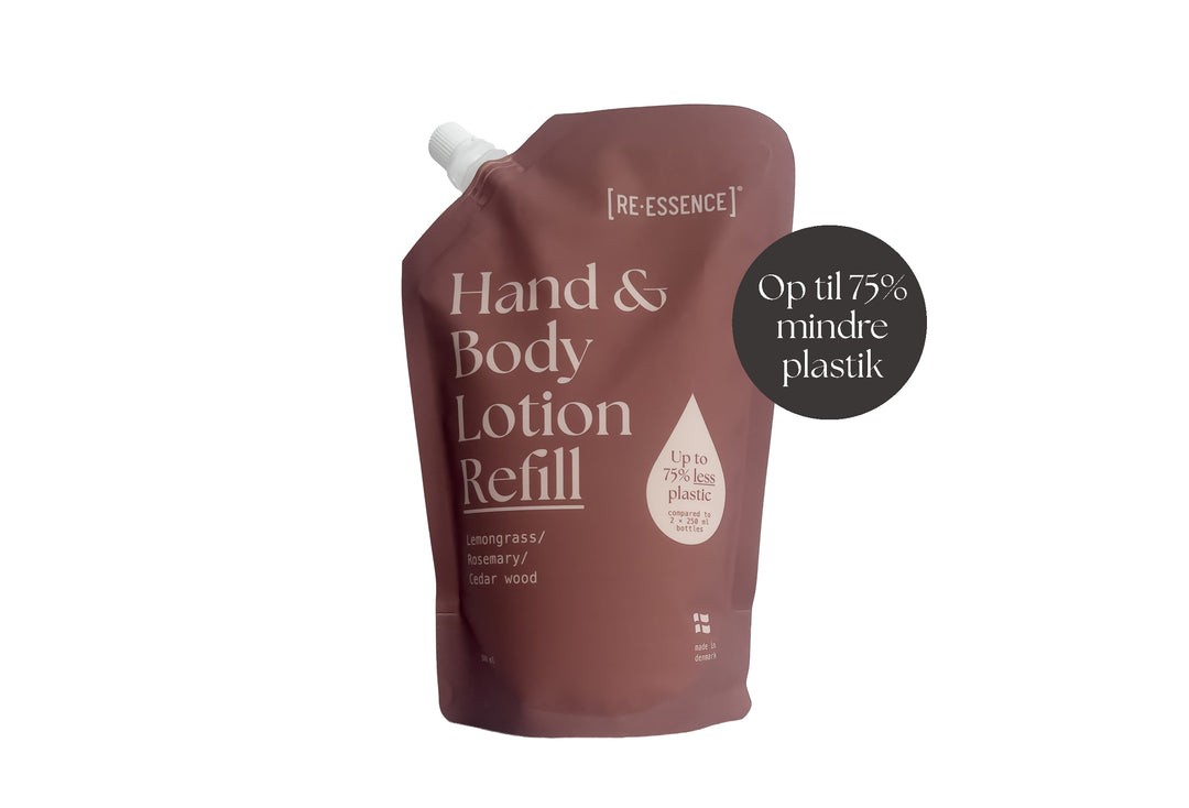 Buy our glass bottles once, and refill them forever with [RE·ESSENCE] hand soap powder and hand & body lotion refills.