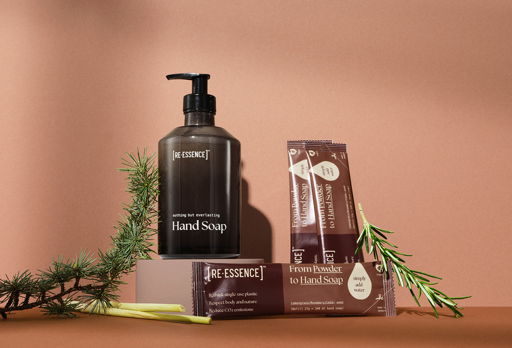 98% NATURAL HAND SOAP · 92% less transport emissions · Reduced single-use plastic · Vegan